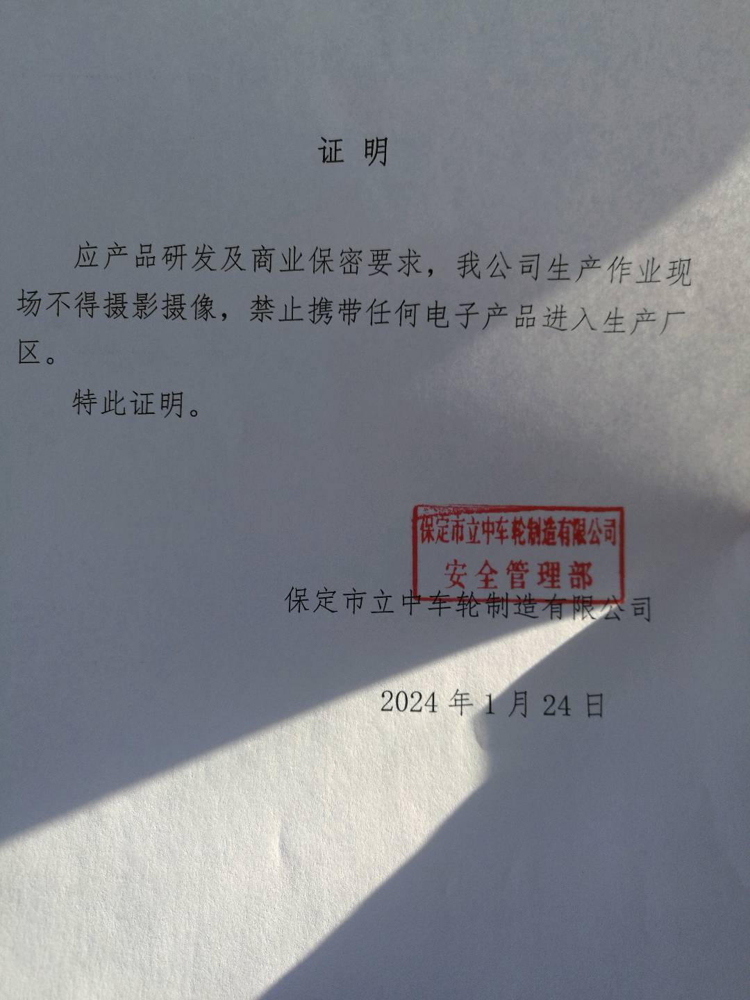 现场调查人员 | 毛国华、王新树 | 用人单位陪同人 | 陈亚敏 | 时间 | 2024-01-24 |