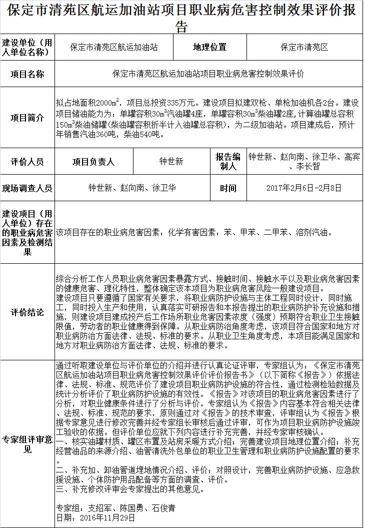 保定市清苑区航运加油站职业病危害控制效果评价